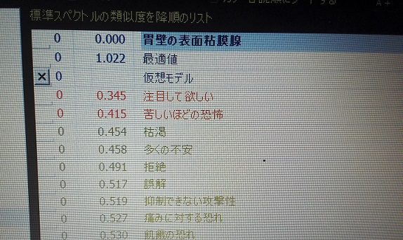 するとその結果は、胃や、胃に関連する器官に周波数の乱れがあり、その感情項目では、「注目してほしい」「苦しいほどの恐怖」などのキーワードが出てきました。