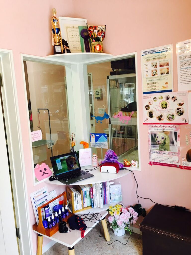 JKCのA級トリマーのオーナー様が経営なさっており、店内はワンちゃんへのリラックス効果がある淡いピンクで統一されていて、可愛らしい雰囲気となっております。